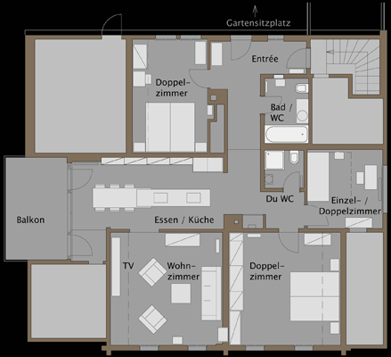 Bergbahnen, Langlaufloipe, Tennis, Wellness, Restaurants, Bahnhof und Lebensmittelgeschäft sind bequem in wenigen Minuten zu Fuss erreichbar. |
